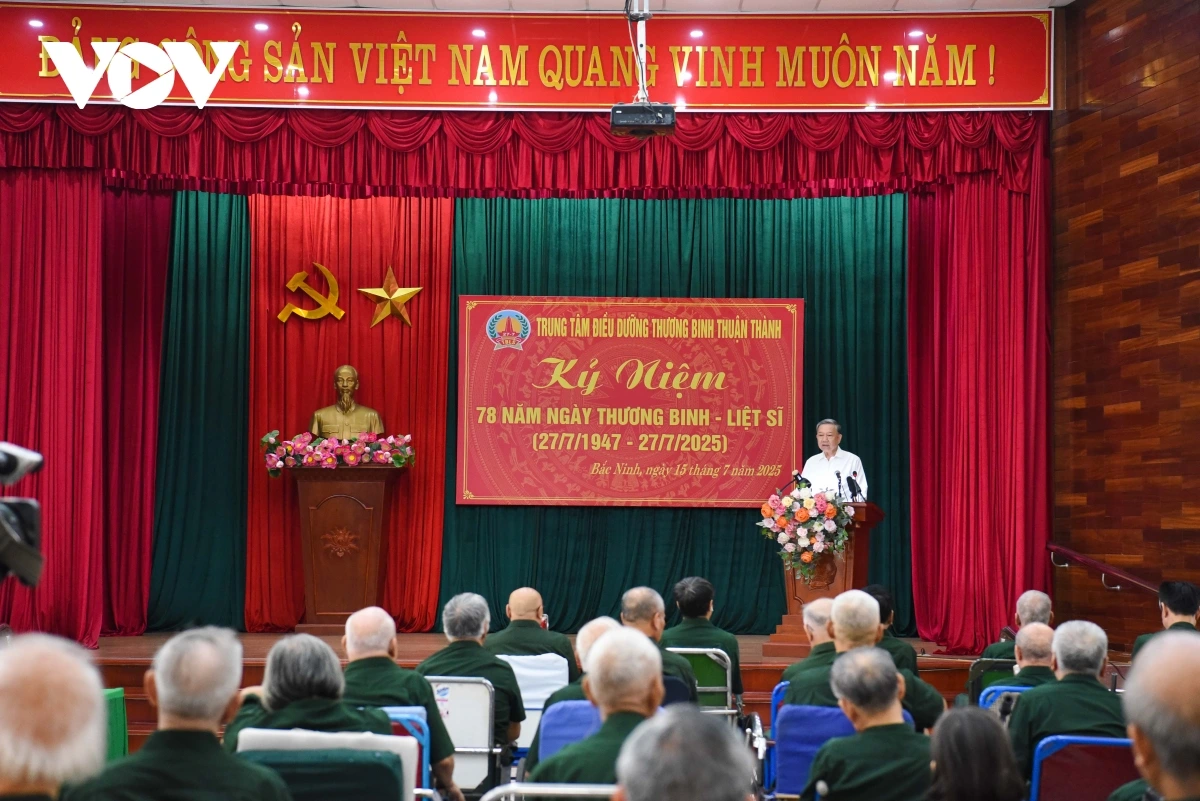 同所の幹部、職員、傷病兵との懇親会で、トー・ラム党書記長は、「革命功労者は民族の貴重な財産であり、ベトナムの愛国心と道徳の神聖な象徴である」という党、国家、国民の一貫した見解を強調し、「恩に報いる」という活動は、単なる重要な政策にとどまらず、全政治システムと社会全体の心からの命令でもあると述べました。