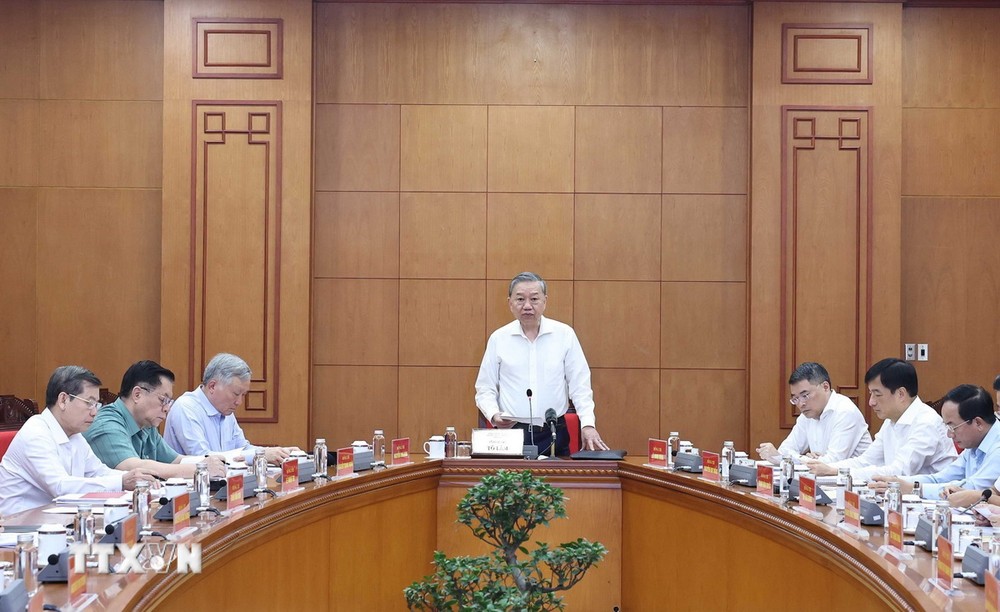 会合で、トーラム書記長は第14回党大会はドイモイ(刷新)事業開始40周年、南部完全解放祖国統一50周年、ベトナム共産党創立95周年を記念するほか、ベトナム独立100周年に向け、国が前進するという新たな紀元を切り開く大会でもある。そのため、社会経済報告書の実施に基礎を作るため、政治報告案には経済に関する大きな観点や目標を明確化する必要があると明らかにしました。トーラム書記長は次のように語りました。