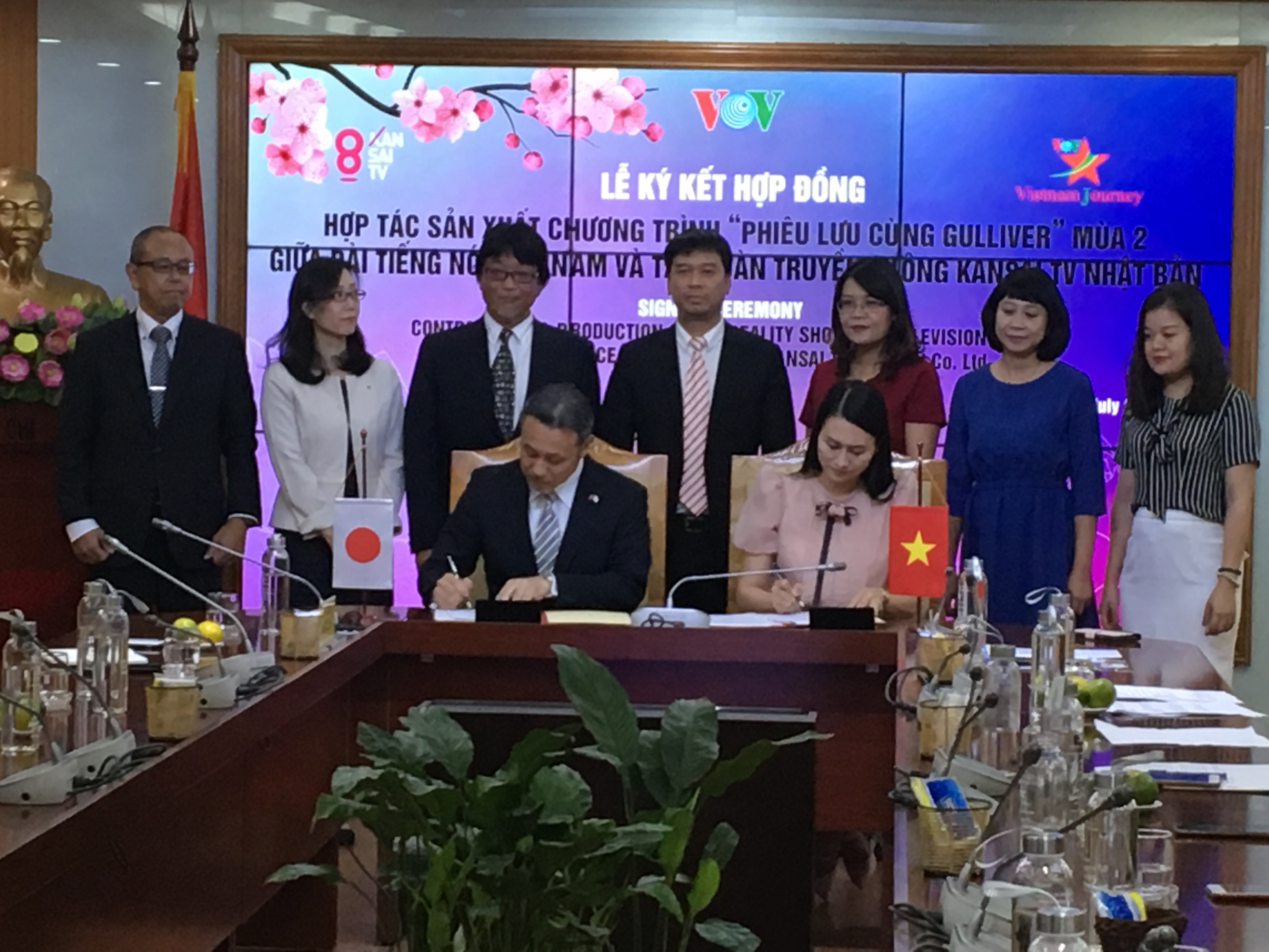 7月31日午後、VOV=ベトナムの声放送局本部で、VOVの観光テレビチャンネル「ベトナムジャニー」と関西テレビ放送株式会社は、日本の観光・文化をPRする番組の共同制作に関する契約書を締結しました。