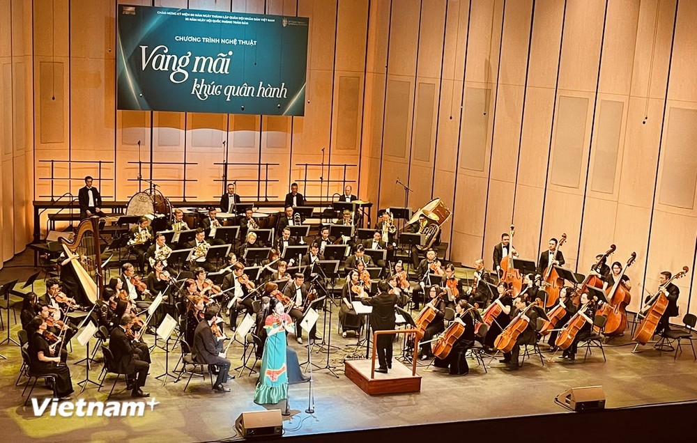 プログラムでは、ベトナム人民軍の生活、戦闘、そして祖国防衛をテーマとする活気に満ちたメロディーや、愛国と民族自尊心を称える曲が披露されました。