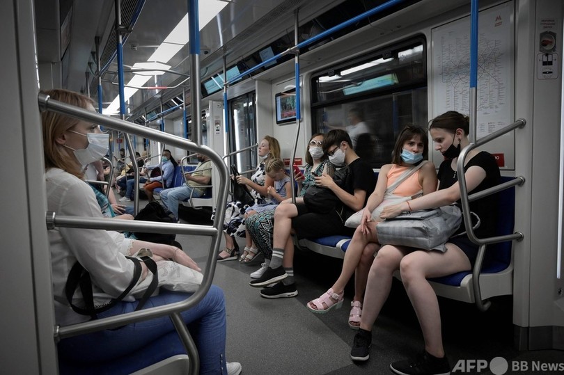 ロシア・モスクワの地下鉄に乗る人々(2021年6月27日撮影)=AFP |