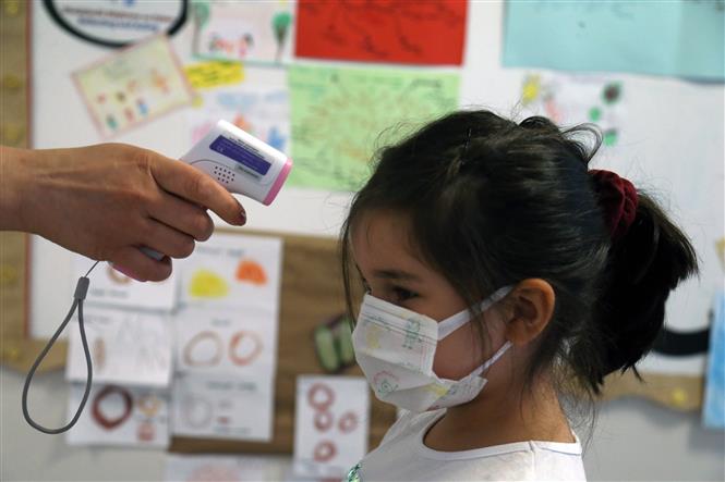 トルコのアンカラで、体温をチェックされる女の子=THX/TTXVN |