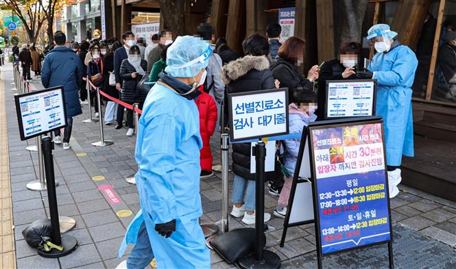 韓国の首都ソウルで、検査所で検査を待つ人たち=Yonhap/TTXVN |