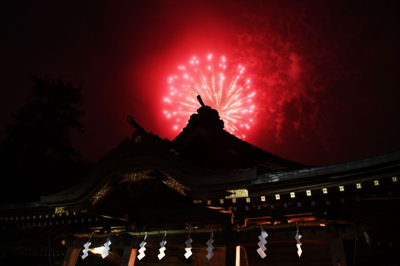 大國魂神社から見る花火(写真:AFP) |