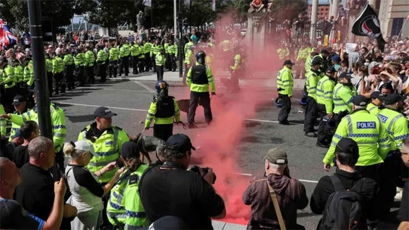 ロンドン、ブリストル、バーミンガム、リバプール、ヘースティングスなどの都市では街頭に警察官が配備されたほか、「人種差別と闘おう」、「極右を止めよう」などのプラカードを掲げた群衆が集まりました。参加したのはイスラム系の人々や反人種差別団体、反ファシスト団体、労働組合、左派組織のメンバー、地元住民などです。
