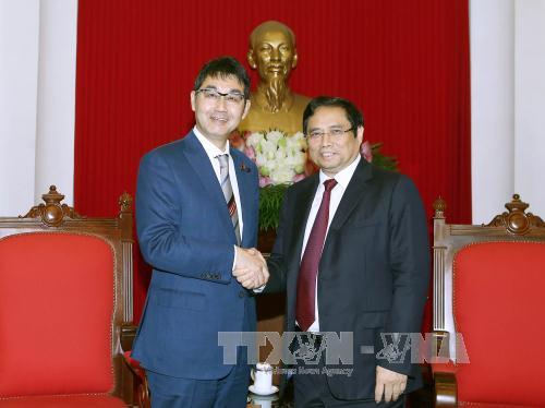 18日午後、共産党本部で、ベトナム・日本友好議員連盟の会長を務めている共産党組織委員会のファム・ミン・チン委員長はベトナムを訪問中の安倍首相の河井克行補佐官と会見を行いました。