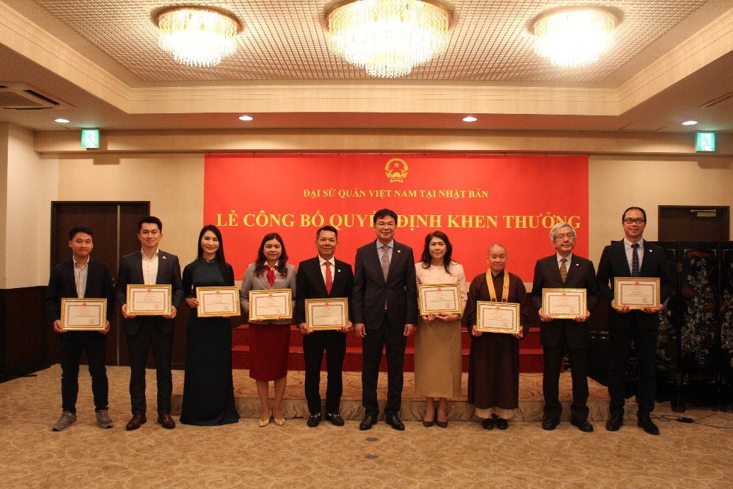 この機に、在日本ベトナム大使館は日本のベトナム人協会、ベトナム知識人協会、ベトナム青年学生協会、Honto TVメディアチャンネルなどに表彰状を手渡しました。