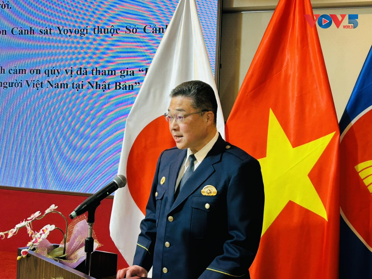 一方、警視庁代々木警察署の野地署長は、セミナーの意義や在ン本ベトナム人の役割を評価しました。野地署長は、「最新の調査では、ベトナム人は日本の外国人労働者のおよそ4分の1を占め、国籍別で最も多い。在日本ベトナム人は日本の産業に欠かせない存在となっている」としたうえで、「今回の取り組みを通じて、安全で安心して暮らせるよう支援したい。困ったときは警察に相談してほしい」と呼びかけました。