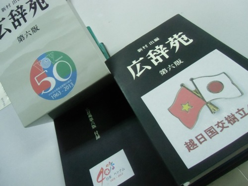 アン 今日は、アンです。先日は、私たちの手元に重い小包が届きました。神奈川県の石川あつしさんが広辞苑を送ってくださったのです。辞書の表紙に「ベトナムの 声放送局日本語課開始50周年」、そして、付録にも「日越国交樹立40周年」のロゴマークが貼ってありました。これは、私たちにとってありがたいお土産で あるだけでなく、石川さんのお気持ちの表れですね。