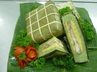 ソン はい。15センチから20センチぐらいの正方形の形で、もち米の中に緑豆の餡と豚肉が入っています。これをラーゾンというバナナの葉に似ている緑の葉っぱで巻いて、12時間ぐらい茹でます。