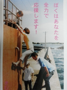 ハー ほんと。この写真を見て、スタッフ一同笑ってしまいました。タテ型の写真には太文字で「ぼくはあなたを全力で応援します!」とあります。
