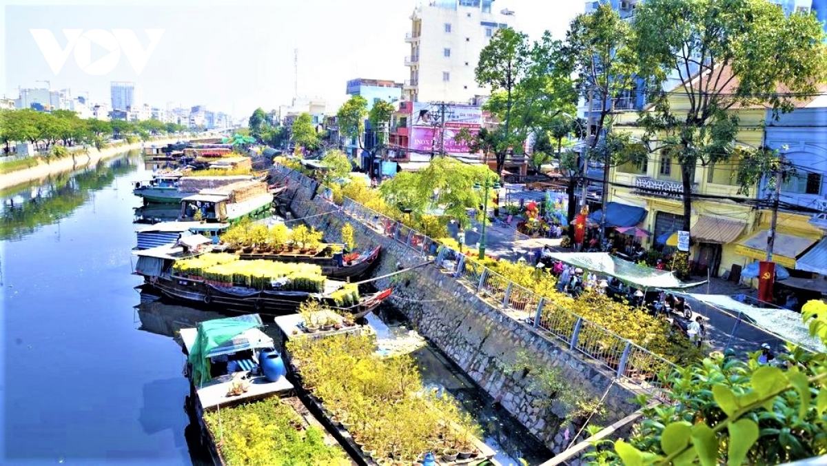 ホーチミン市にある梅の花の水上市場 |