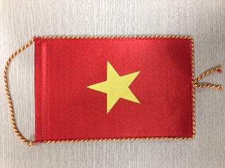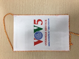 ハー きのしたさん、メールありがとうございます。現在、VOV日本語課のペナントは布で出来ている20x13㎝の長方形の旗です。表は、ベトナムの国旗のシンボルである赤地の中央に黄色い星が付いてあります。裏には、VOV5という大文字とHPのアドレスが付いてあるものです。