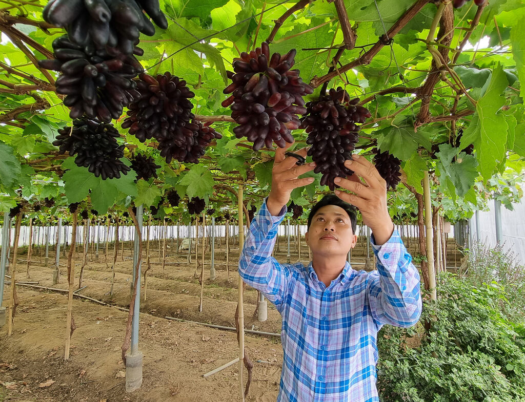 ブラックフィンガー葡萄が高技術農業モデルでカインホア省ドービン地区にて栽培される(写真:Nguyễn Thành/TTXVN) |
