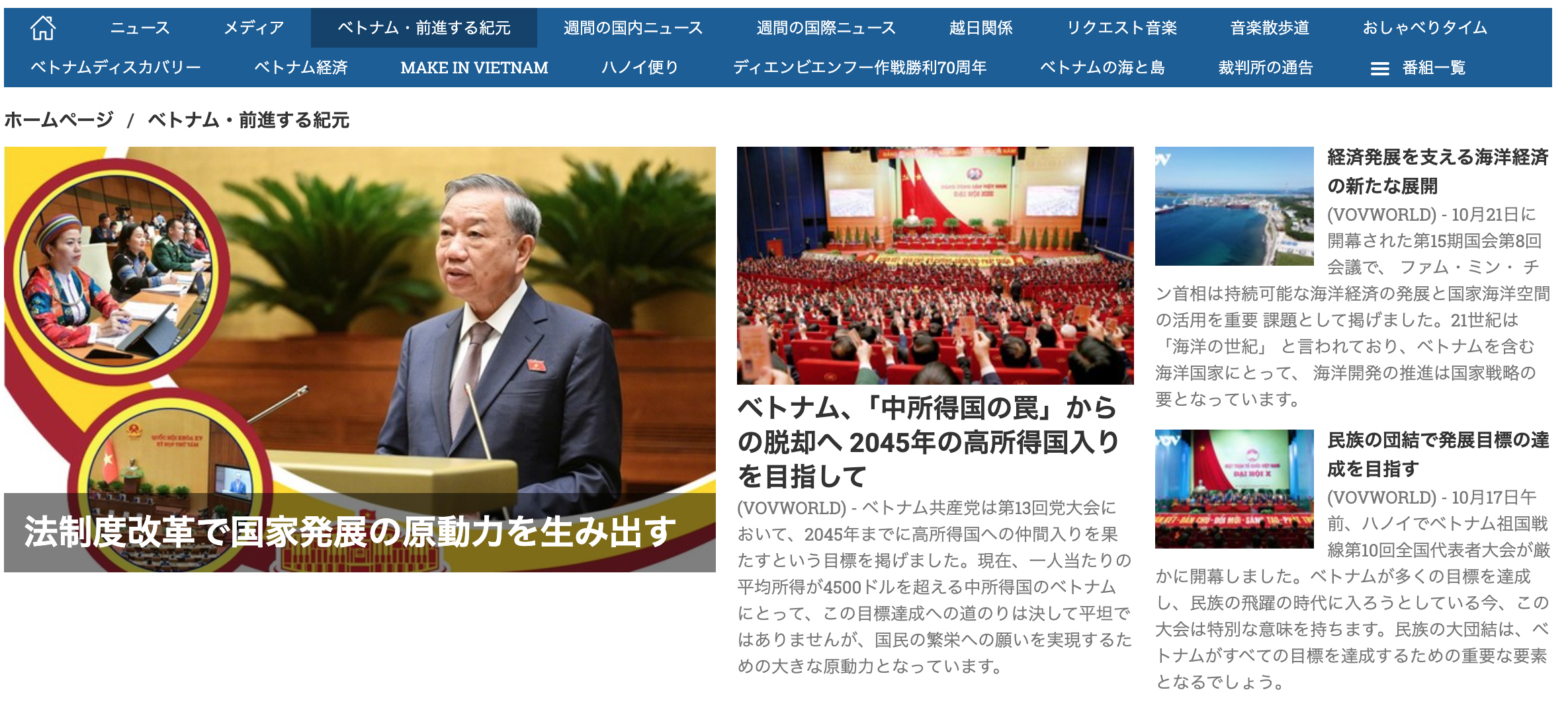 日本語放送のホームページの特集「ベトナム・前進する紀元」 |