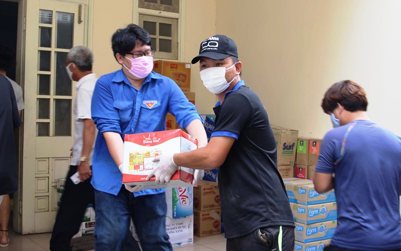 市民に補助金と支援物資を届けるボランティア=Báo Nhân Dân |