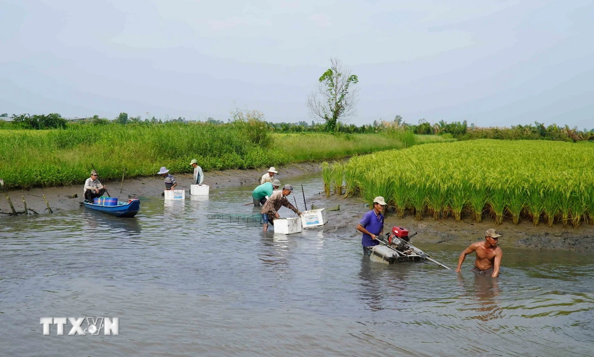 南部キエンザン省アンミン県における稲作とエビ養殖を組み合わせたモデル(写真:Văn Sĩ/TTXVN) |