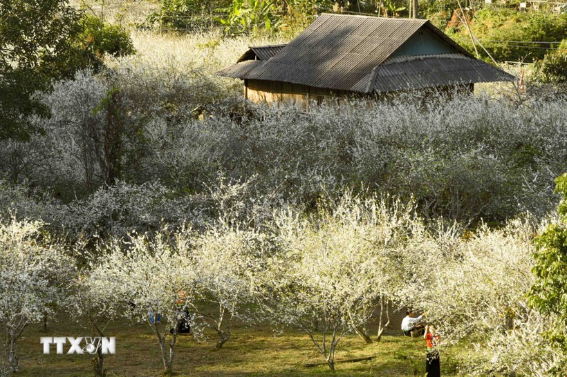 北部山間部ディエンビエン省フィエンバン村で咲く梅の花(写真:Xuân Tư/TTXVN) |