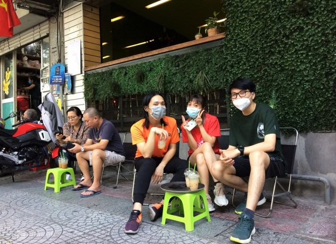 ホーチミン市にある喫茶店で、カフェーを味わうお客さん=VnExpress |