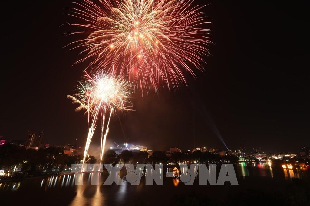 ハノイのホアンキエム湖で打ち上げられた新年を祝う花火(写真:Minh Quyết/TTXVN) |