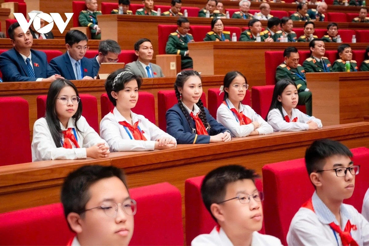 2025年12月に開催された第11回全国愛国競争大会に参加した子ども代表(写真:Bùi Thị Hương Giang/VOV1) |