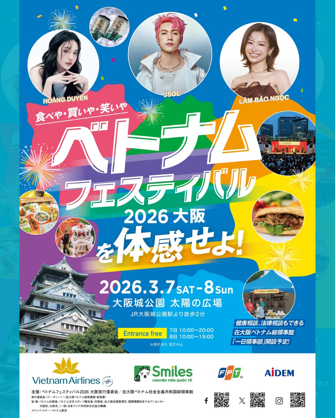 タオ 3月7日と8日、大阪城公園・太陽の広場で「ベトナムフェスティバル2026大阪」が開催されます。音楽ステージを中心に、文化体験やグルメブースなど、五感で「今のベトナム」に触れられる内容だということです。