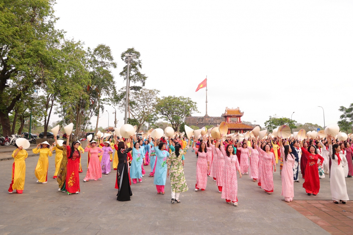 3月8日の国際女性デーに合わせ、中部フエ市で開催された「輝く3月」イベントに参加する約1000人の女性(写真:Lê Hiếu/VOV-Miền Trung) |