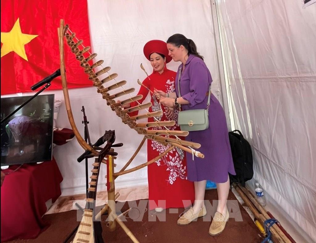 外国人観光客、ベトナムの伝統楽器トルンについて学ぶ(写真:TTXVN) |