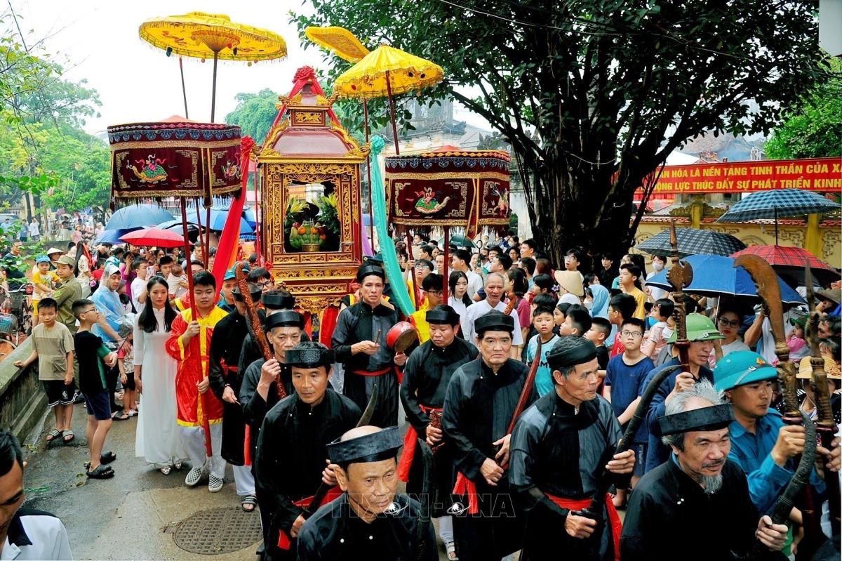 ハイズオン省ハイズオン市のスオット神社祭りで行われた神輿行列(写真:TTXVN) |