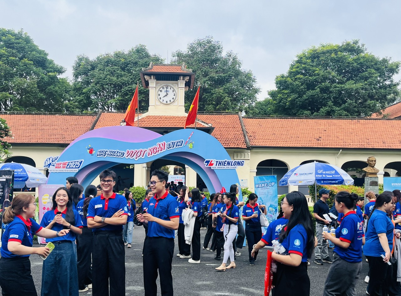 2025年6月21日午前、ホーチミン市内のレ・ホン・フォン高校で開催された「2025年受験サポート出陣式」に、若者ボランティアが参加する(写真:Hoàng Tuyết/Báo Tin tức và Dân tộc) |