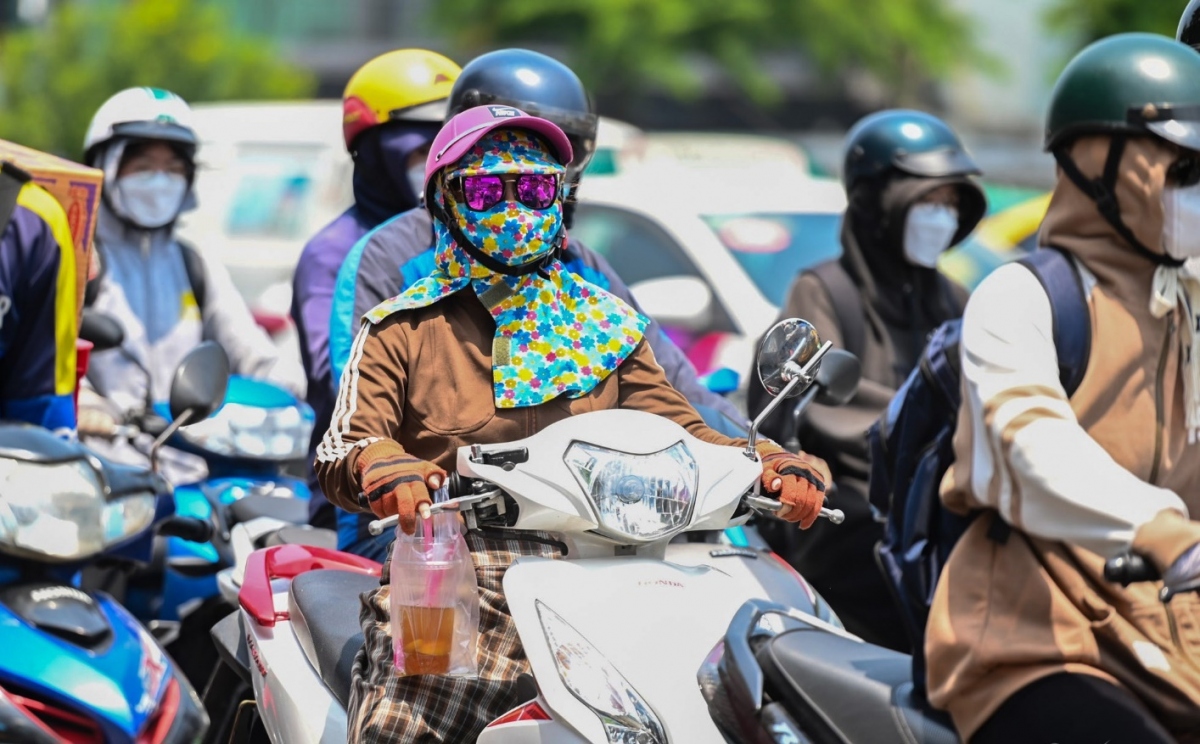 強烈な日差しの中、バイクを運転する人々(VOV.VN) |