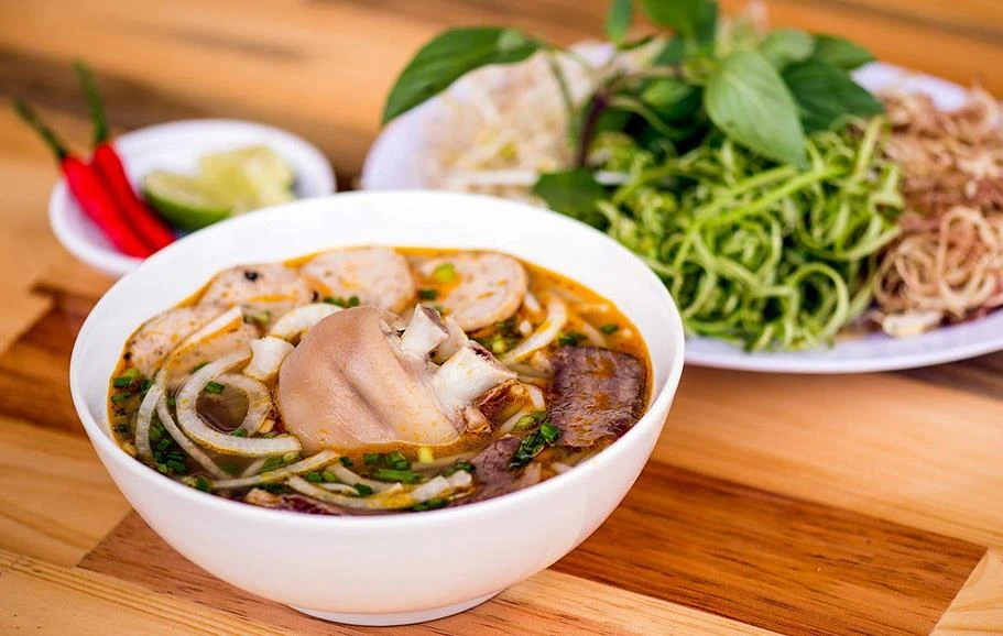 古都フエ名物の米粉の麺と牛肉を用いた料理「ブンボーフエ」(TTXVN) |