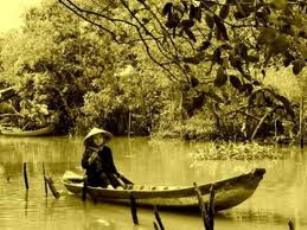 青い用水路、緑の椰子並み、夕暮れの日差しの下にどこからの歌声が聞こえて来ます。続いてメコン川面で歌われる民謡、「東南部のメロディー」(ho mien dong nam bo)をどうぞ