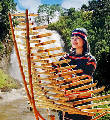 トルンは中部高原 地帯ティグェン地方に住む少数民族ザーライ族とバナ族の楽器です。この楽器は12本から16本の竹筒を並べたもので独特な音階で音色を奏でます。この楽器のメロディーは谷川がサラサラと流れる音や滝の音が鳴るような表現を得意とします。