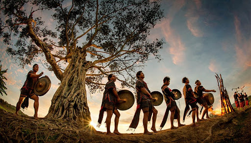 ドラとは打楽器の一つで、吊り下げられた円盤みたいな形のものをバチで叩いて音を鳴らします。ベトナム中部高原地帯のタイグエン地方に住む少数民族の伝統的な楽器でした。2005年、ベトナム中部高原地帯ティグエン地方のドラ演奏空間がユネスコ=国連教育科学文化機関により、無形文化遺産として認定されました。どらは神聖な力を持つ楽器であり、コミュニティの重要な儀式において使用されます。その響きは天地にこだまし、人々の想いや願い、感情を神々や聖なる大地へと届けます。銅鑼の文化は叙事詩にも描かれ、西原の少数民族にとっての壮大な象徴、そして誇りとなっています。
