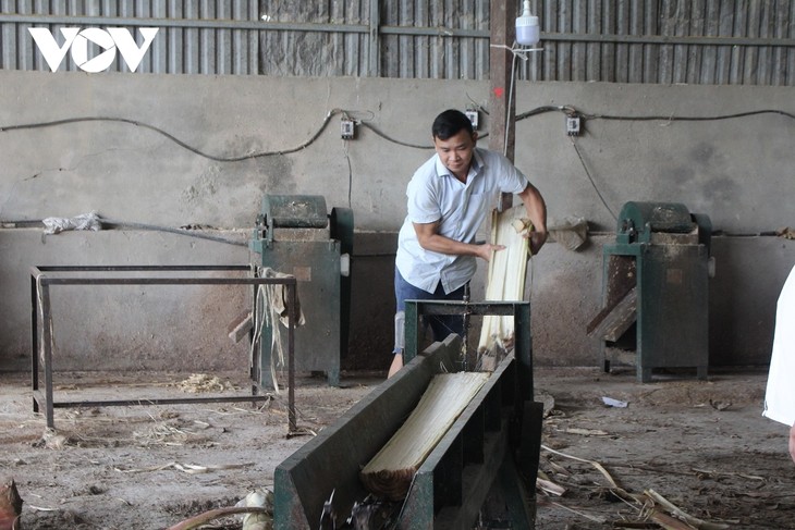 ムオンブ村の企業の代表者カ・バン・ムアさんは、「地元には豊富に原材料があり、我が家はバナナの幹で繊維を生産する機械を購入し、労働者を雇っている。そして、農民たちのバナナの幹を買って繊維を生産している」と明らかにしました。