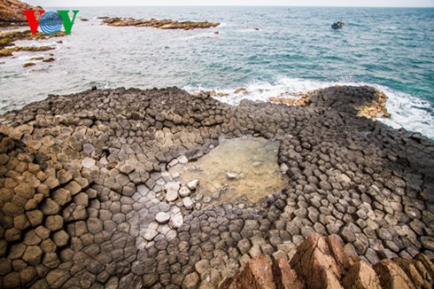 これは、噴出した溶岩が海水に接触した時に、凍結してできた結果です。