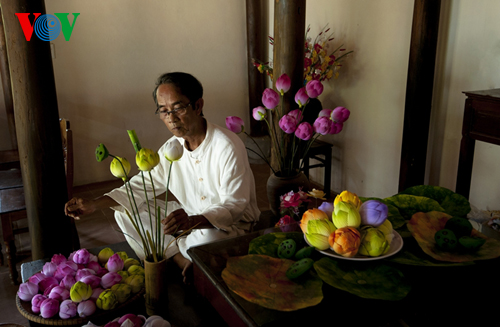 この数十年間、紙製の造花に携わってきた画家タン・バン・フイ