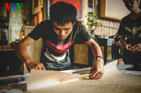 職人らがチュクチー紙を加工