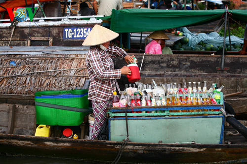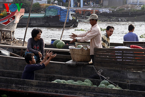 南部ティエンザン(Tien Giang)省カイベ(Cai Be)県カイベ町にはカイベ水上市場があります。これは西南部地域の最も大きな市場の1つです。その市場では日用品や、果物、食品など様々な商品が売られています。