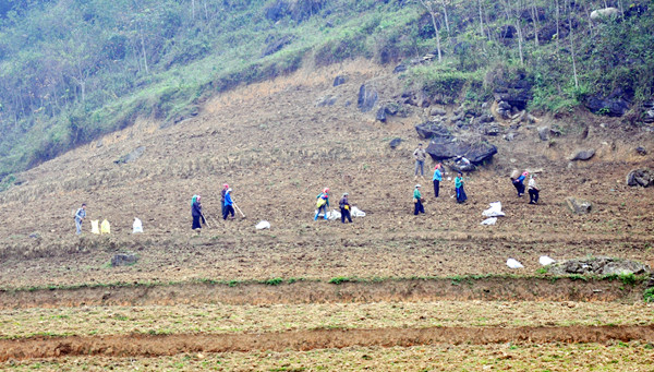 3月から各民族の人々が耕作地を準備。手作業だけでなく・・・
