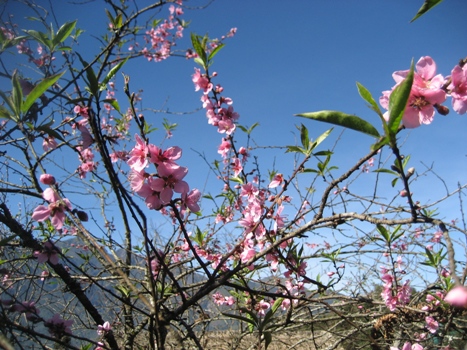 年末年始に大寒波に襲われたが桃の花が咲誇る