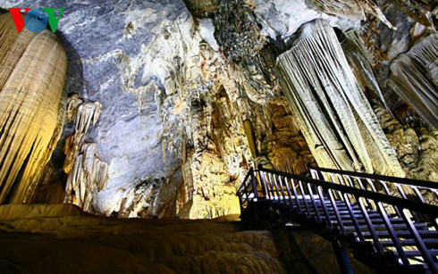 この洞窟は中部クアンビン省ボーチャク県ソンチャク村にあります。「ティエン・ドゥオン洞窟(天国の洞窟)」と名付けられたこの鍾乳洞は全長31キロで、150メートルの深さに巨大な空間が広がっています。2010年に公開されました。