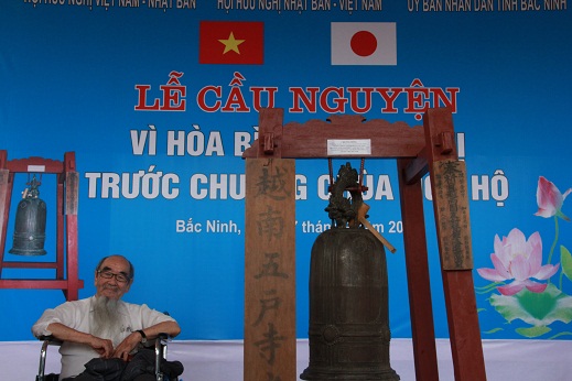 式典は来年ベトナムと日本ベトナム外交関係樹立40周年とこの梵鐘返還から35周年を迎える活動の一環です。式典には五戸寺の梵鐘の発見者で返還運動の功労者である渡辺卓郎弁護士が89歳という高齢を押して参加されました。