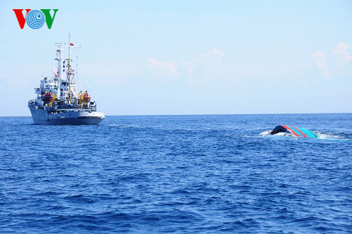 既にお伝えしましたように、5月26日、中国船は、ベトナムのホアンサ群島の漁場で漁獲していたダナン市の漁民の漁船Dna90152号に意図的に体当たりし、この漁船を転覆させました。現在、この漁船が引き揚げられましたが、ベトナム漁民に対する中国側の野蛮で非人道的な行為を示す証と見られています。この写真記事で、漁船Dna90152号の引き揚げ作業をご紹介します。