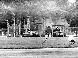 1975年4月、ベトナム人民軍司令部は南部のサイゴン市にある傀儡政府の本部への進攻を目指すホーチミン作戦を決定しました。その直後、ベトナム軍の多くは南部の各地方で攻撃を行い、勝利へ近づきました。4月30日、ベトナム軍はサイゴンに進軍し、当時の傀儡政府のズォンバンミン大統領は降伏しました。その後、サイゴン市はホーチミン市に改名されました。ではおしまいに「春に行軍しおう」(cung hanh quan di giua mua xuan)をどうぞ