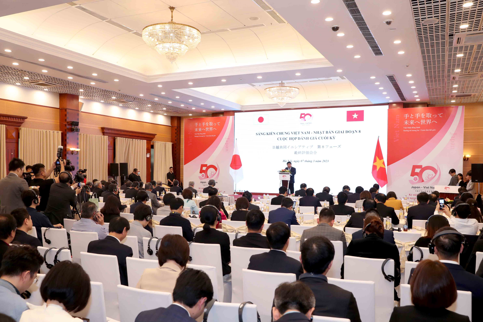 セミナーの第一部では、日越共同イニシアティブ第8フェーズの最終評価会合が行われ、最終評価が決定されました。日越共同イニシアティブは、2003年に設置されたベトナムの投資環境整備のための対話枠組みで、2021年に第8フェーズに移行しました。これまでに594項目のうち84%にあたる497項目がスケジュール通りに完了しています。