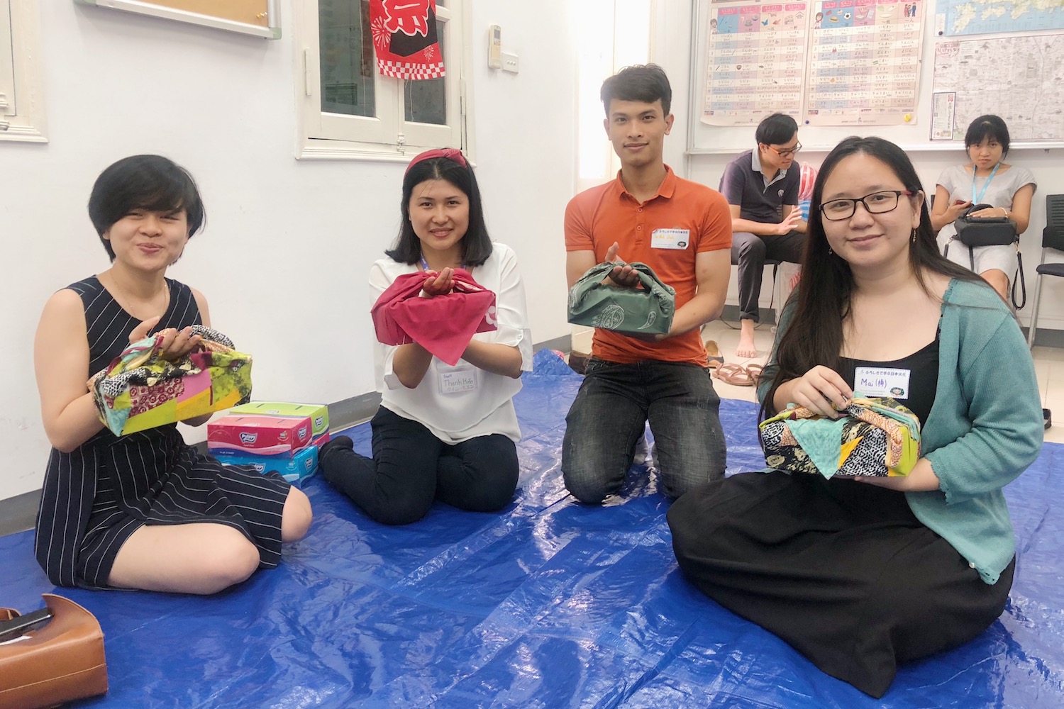 現在、環境汚染はベトナムを含む全世界の深刻な問題になっています。捨てられようとする布などを素材とする風呂敷を習うことによって、「もったいない」という意識を自然に身につけられるようになり、環境汚染の深刻さに対する人々の認識を高めるという効果があるとみられています。