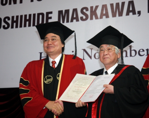 「当大学は世界の科学技術に際立った貢献をしてきた科学者を表彰します。益川氏は当大学のパートナーとなっている大学の教授であることから、この授与式はその意味があります。また、この授与式はハノイ国家大学の教授、中でも若い科学者に対し、素粒子研究に専念するよう原動力になると思います。」