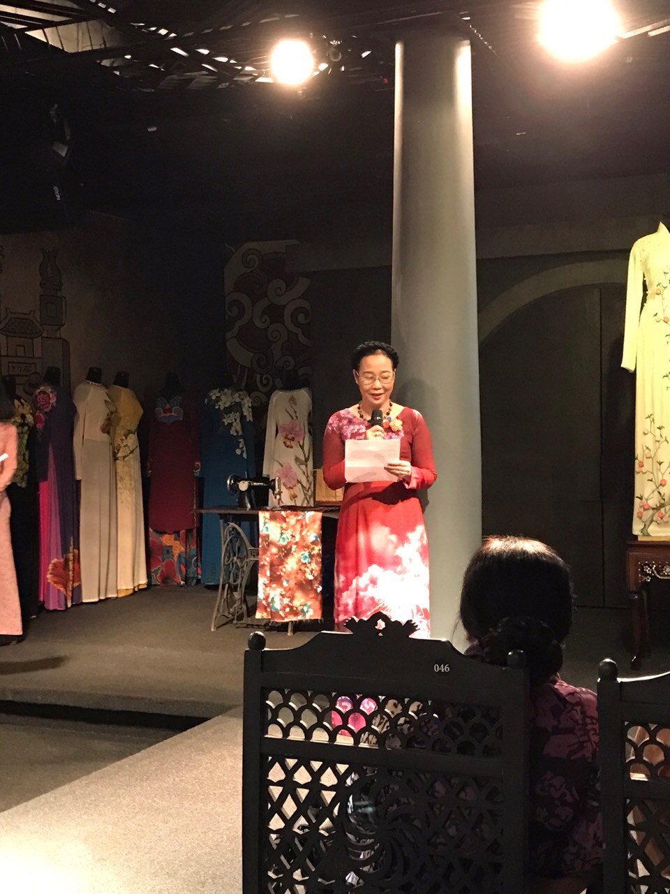 | シー・ホアンさんが作ったつまみ細工のアオザイ |